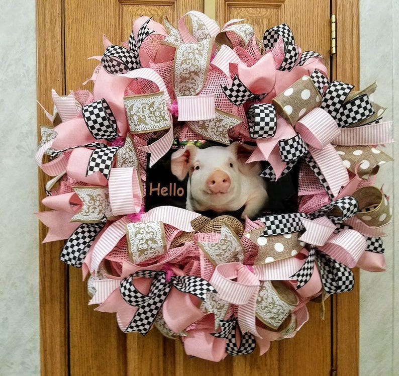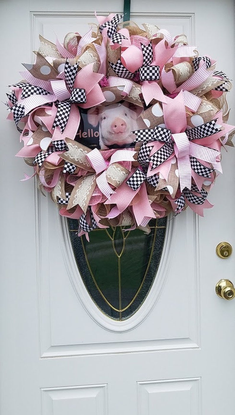 Pink Pig Wreath Animal Wreath Farmhouse Decor Pig Decor Etsy
