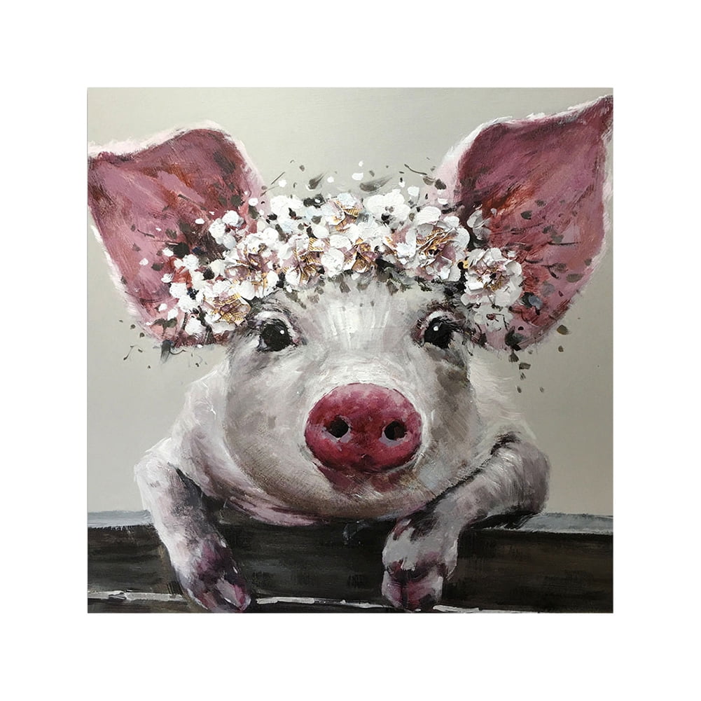 Visland Canvas Prints Wall Art Pig with wreath Farmhouse Decor Animal
