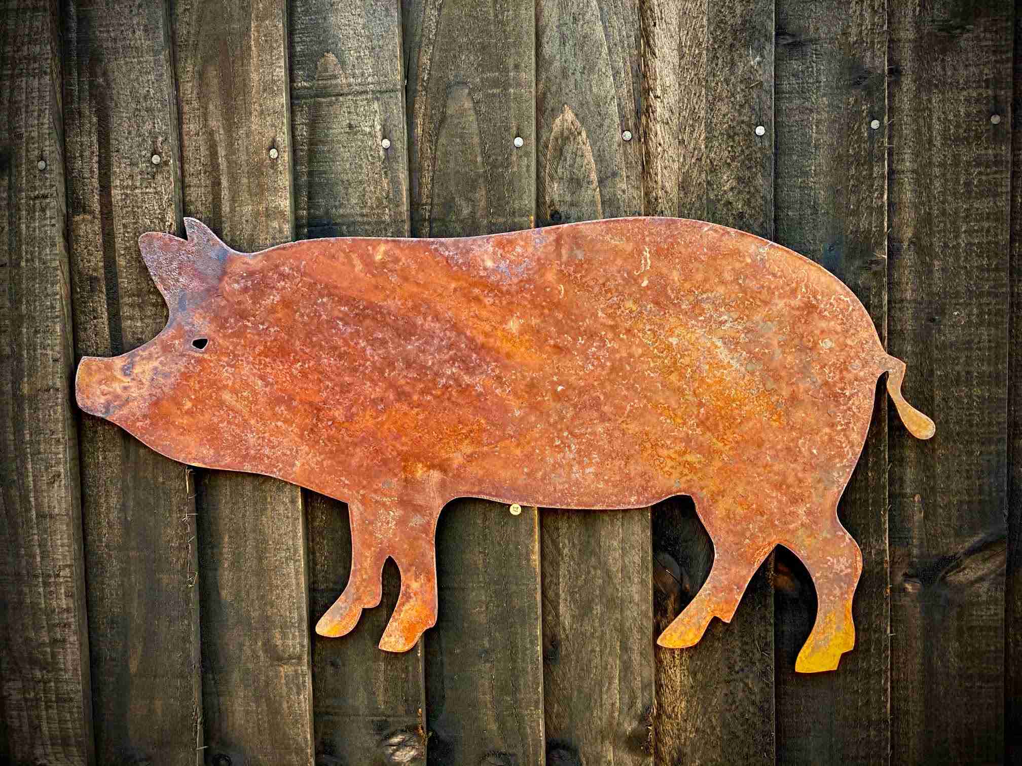 Large Exterior Rustic Rusty Pig Farm Animal Garden Wall Hanger House